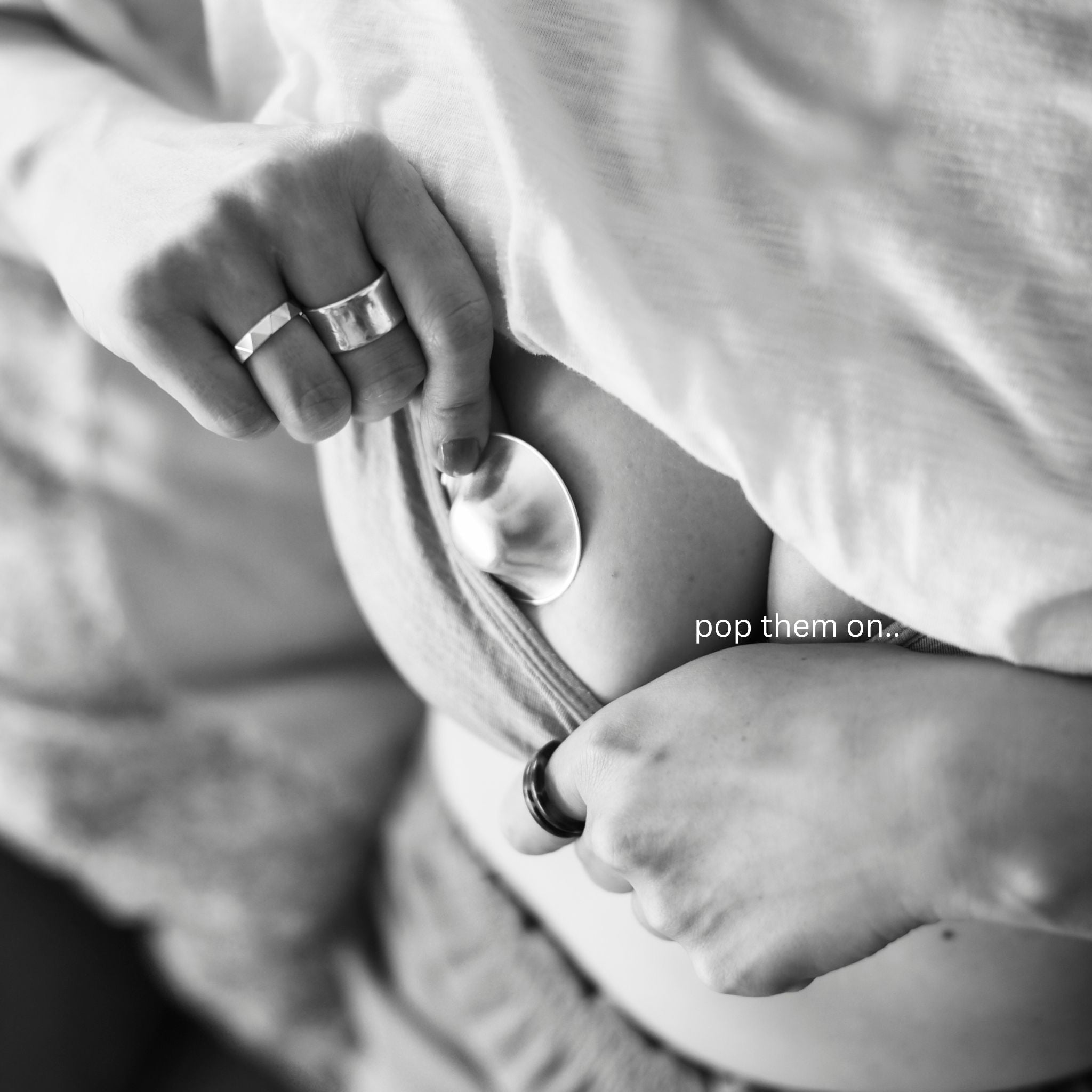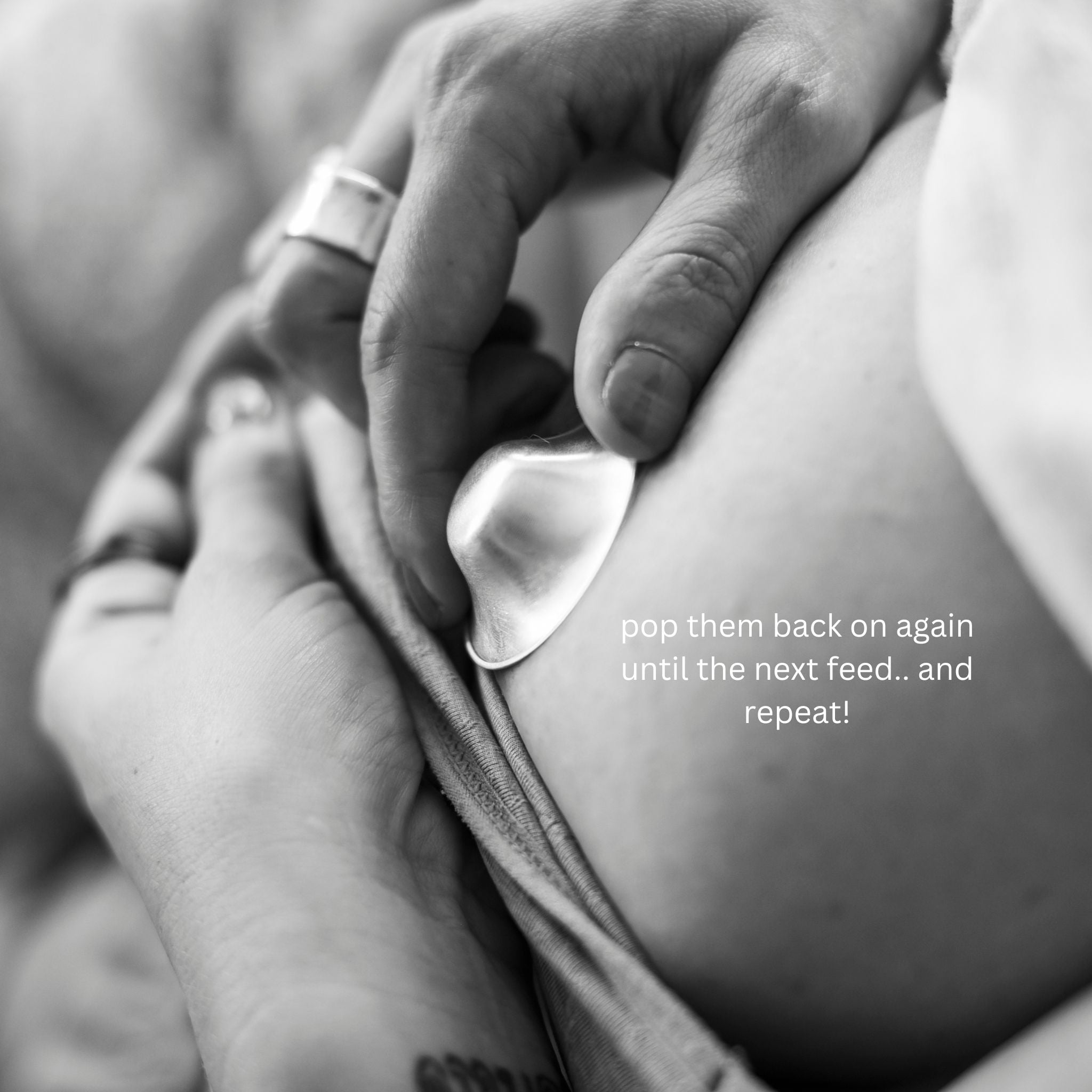 Simply place Silverette® over your nipples, using your bra or nursing singlet to hold them in place. Wear them for a couple of hours at a time, or as tolerated, in between feeding/pumping sessions.
